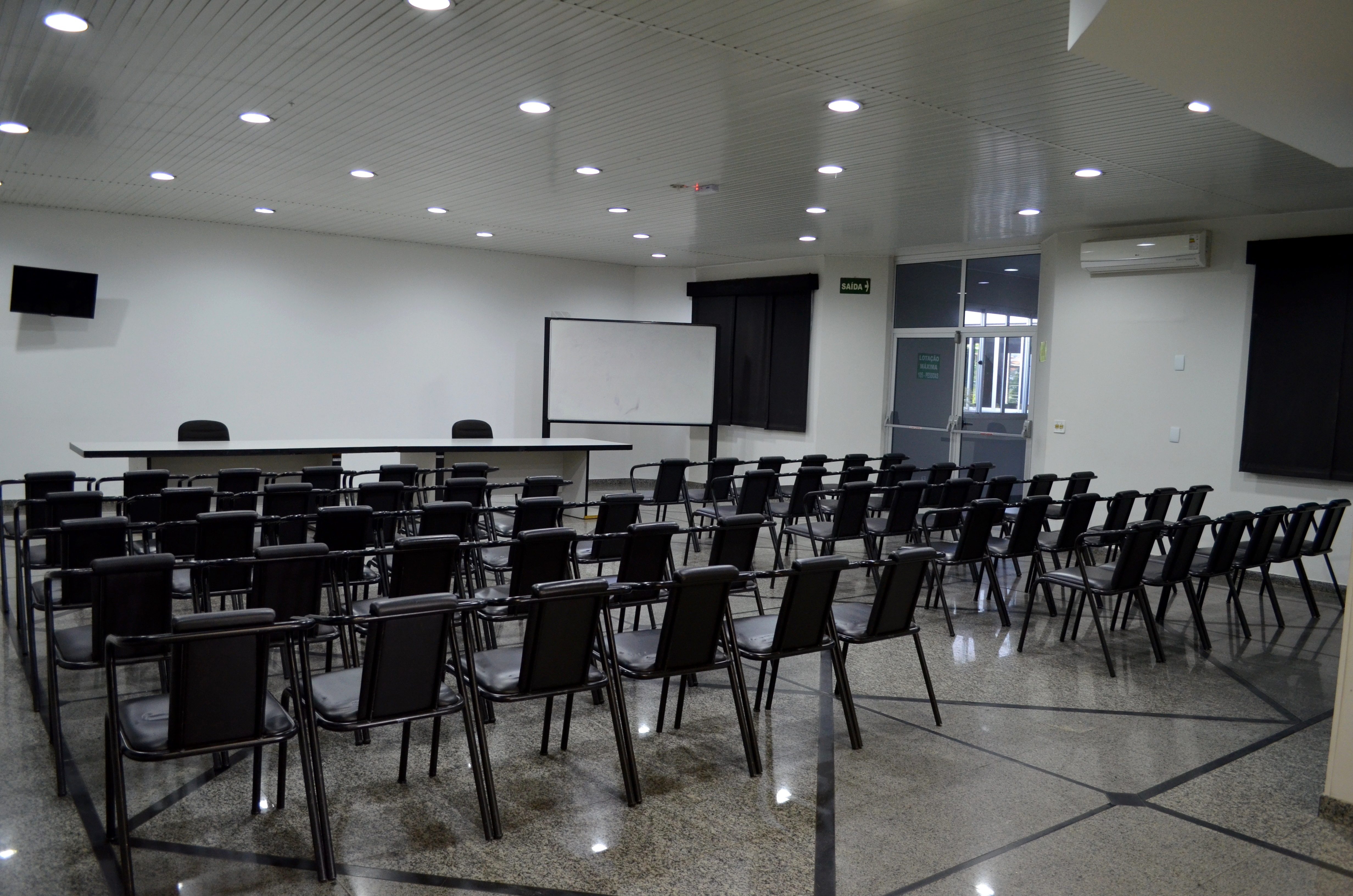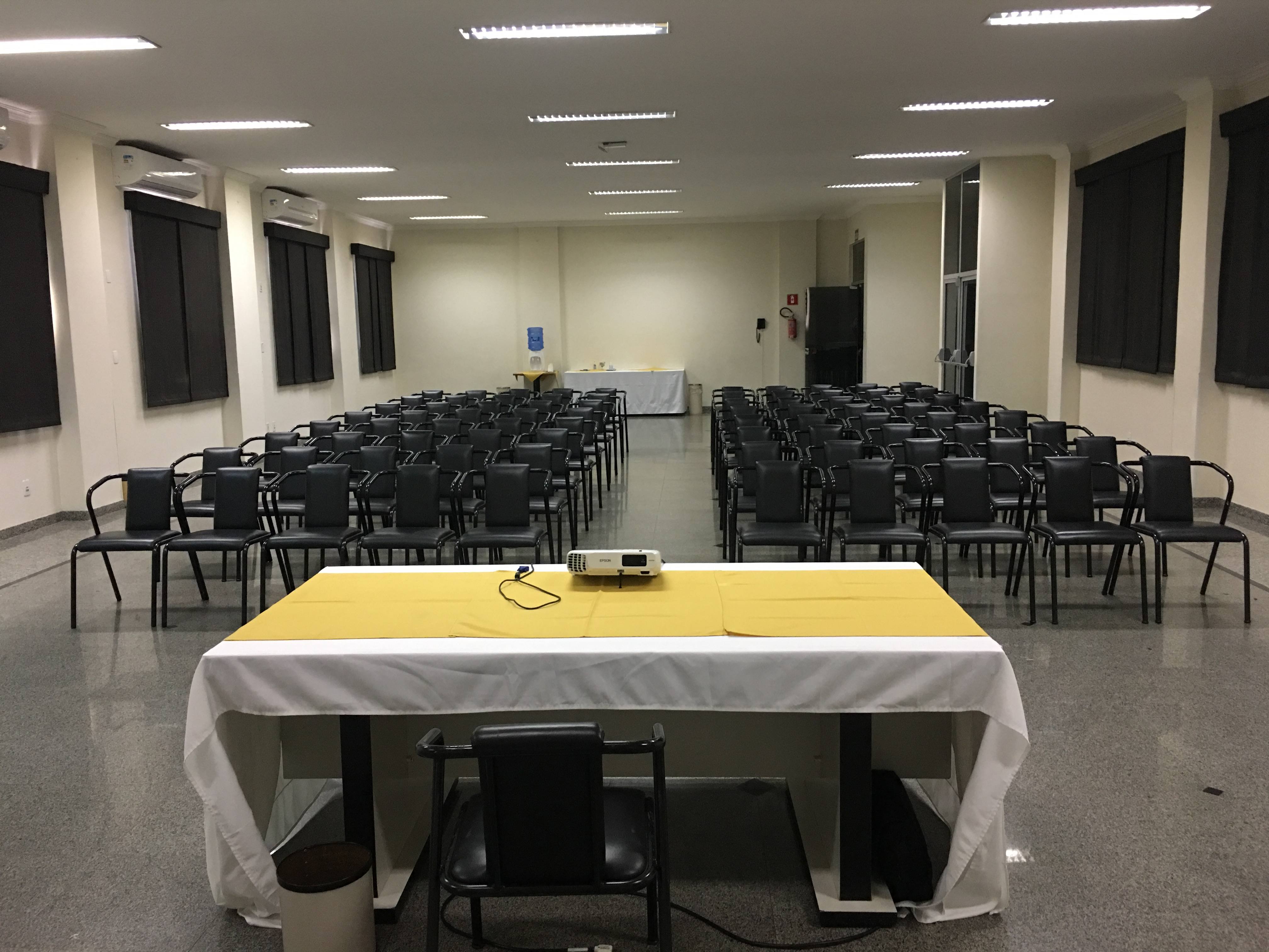 Esta sala esta localizada logo na entrada de nosso hotel, uma sala de fácil acesso sua área é de 89m² e possui um pé direito de 2,90m², esta sala esta equipada com uma TV de 32” para projeção via HDMI, além de Ar condicionado e Wifi.
